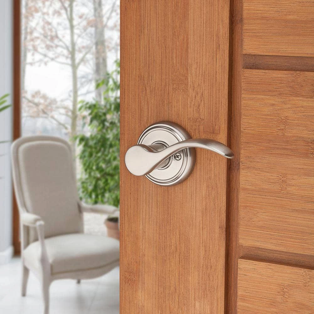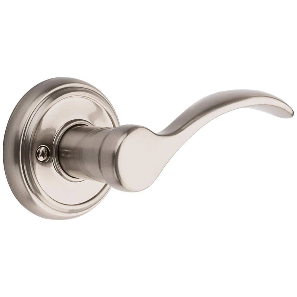 - Traditional lever design shown in a satin nickel finish