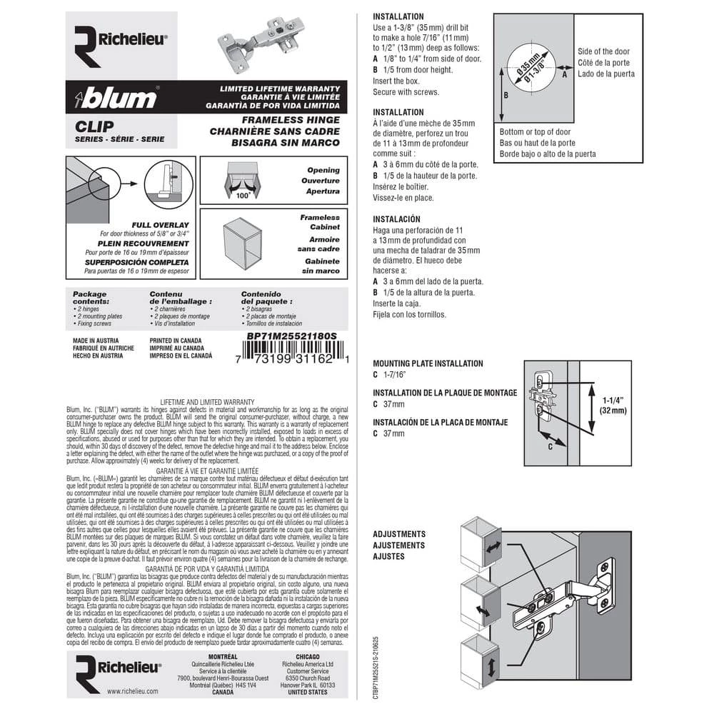 - Compatible with Blum Blumotion self-closing mechanism, Richelieu model number BP973A0500