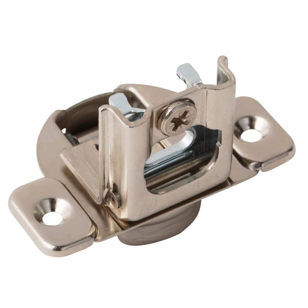 The Blum Compact 1-1/4 in. Overlay Frame Cabinet Hinge (2-Pack) is a self-closing hinge that is compatible with the Blumotion self-closing mechanism model #BP971A9700S. This hinge has a nickel-plated for a finish.