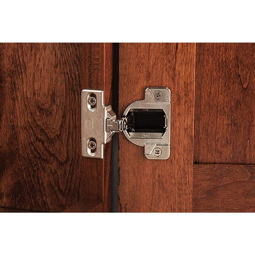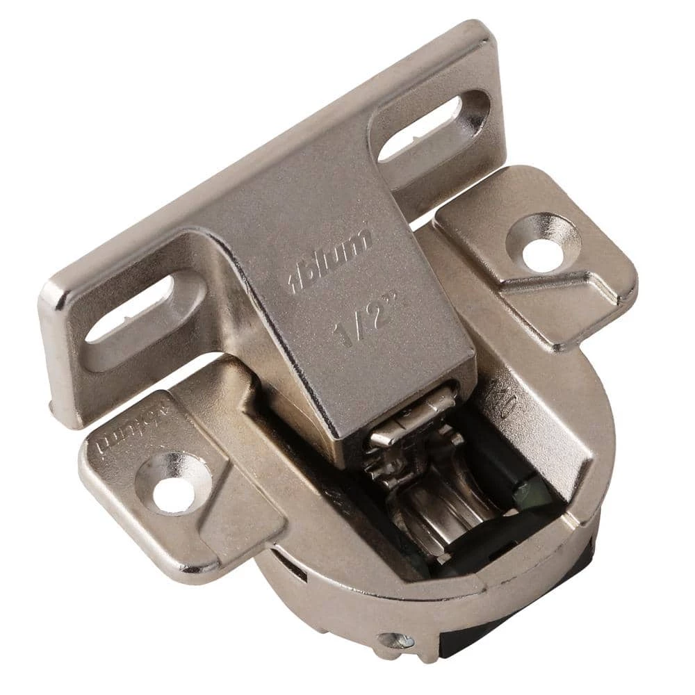 The Blum Compact 1/2 in. Overlay Frame Cabinet Hinges (2-Pack) feature 110 degree openings, nickel-plated metal construction, two screw cabinet frame installation and 3-way independent adjustments.