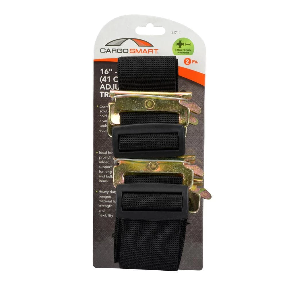 CargoSmart’s Adjustable Track Bungee works great to secure material cargo and equipment in enclosed trailers or garages. The flat bungee design provides a larger surface area to secure cargo. Ideal for providing supplemental support for long and bulky items. Constructed with a spring-loaded fitting that clips into E-Track anchor points, and CargoSmart’s exclusive X-Track system, to provide a safe and secure connection. The Adjustable Track Bungee is available in a variety of straps lengths to accommodate cargo of all sizes.