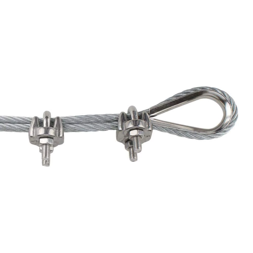 Wire rope clamp sets serve as an alternative to splicing and is used to secure wire rope around a thimble. For use on uncoated wire rope. Do not use on coated wire rope without first removing the coating from the assembly area.