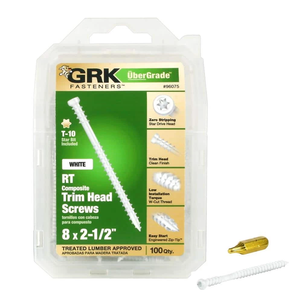 GRK FIN/Trim Head Screws are an excellent choice for most fine carpentry applications. The FIN/Trim is also suitable for the installation of window extension jambs and molding. Special features include W-cut threads and Zip tips to help prevent wood splitting. The screws are Climate coated for corrosion resistance.