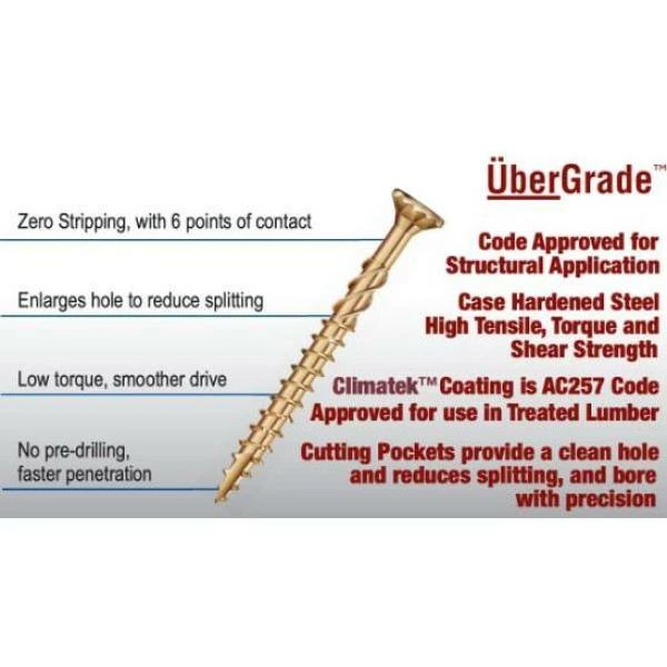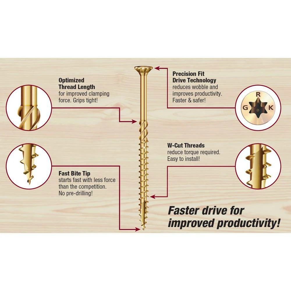 GRK’s R4 self-countersinking screw has a patented under head with saw-blade like cutting teeth and 6 self-contained cutting pockets. Together they act similar to a circular saw-blade, transporting the drill dust away from the edge of the screw hole while cutting a perfectly clean hole into even the most brittle materials without cracking any surface treatment. R4 Multi-Purpose Framing Screws are used for wood, plastic, cement fiber board, particle board, sheet metal, wood decking and melamine. for use in all applications that include pressure treated lumber.