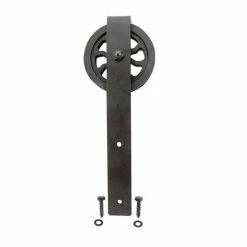 Quiet Glide Hook Strap Black Rolling Barn Door Hardware Kit with 5 in. Wheel
