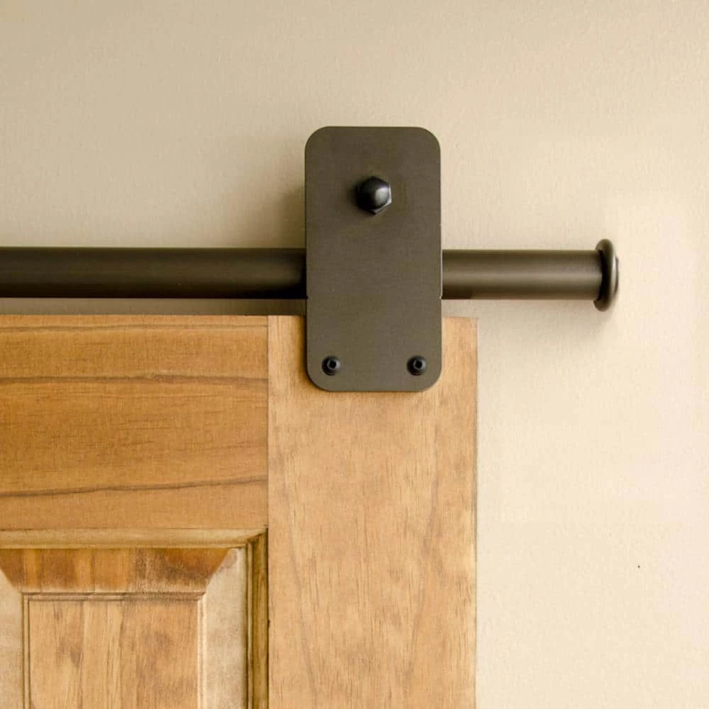 Now is your opportunity to make your home stand out from the crowd with Quiet Glide rolling door hardware. The Quiet Glide rolling door hardware will work with virtually any door style and be easily mounted to the wall in new construction or remodeling projects. The hardware kit has a durable powdered coat finish that contains 2 designer door rollers with thermoplastic wheels for a smooth and quiet rolling effect, One 96 in. solid aluminum rail, 6 vertical brackets to attach the rail to the wall, 1 pair of metal end caps to provide a finished look, 1 pair of metal center floor guides, 1 pair of designer metal floor door stops and all the hardware fasteners to assemble the barn door hardware to the door. (Door not included).