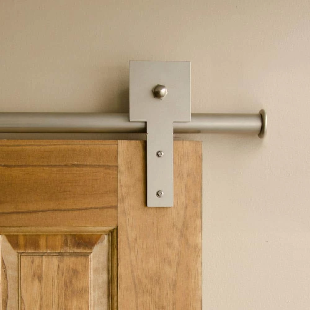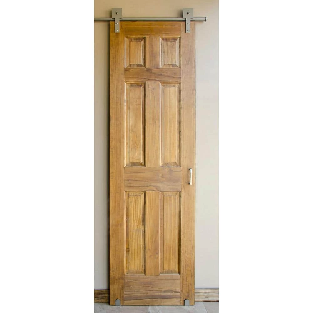 Now is your opportunity to make your home stand out from the crowd with Quiet Glide rolling door hardware. The Quiet Glide rolling door hardware will work with virtually any door style and be easily mounted to the wall in new construction or remodeling projects. The hardware kit has a durable powdered coat finish that contains 2 designer door rollers with thermoplastic wheels for a smooth and quiet rolling effect, One 96 in. solid aluminum rail, 6 vertical brackets to attach the rail to the wall, 1 pair of metal end caps to provide a finished look, 1 pair of metal center floor guides, 1 pair of designer metal floor door stops and all the hardware fasteners to assemble the barn door hardware to the door. (Door not included).