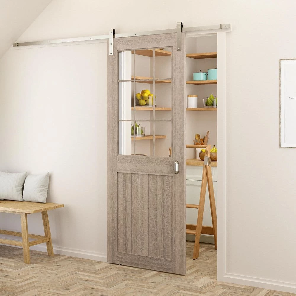 Quiet Glide 96 in. Soft Close Satin Nickel Sliding Barn Door Hardware and Track Kit