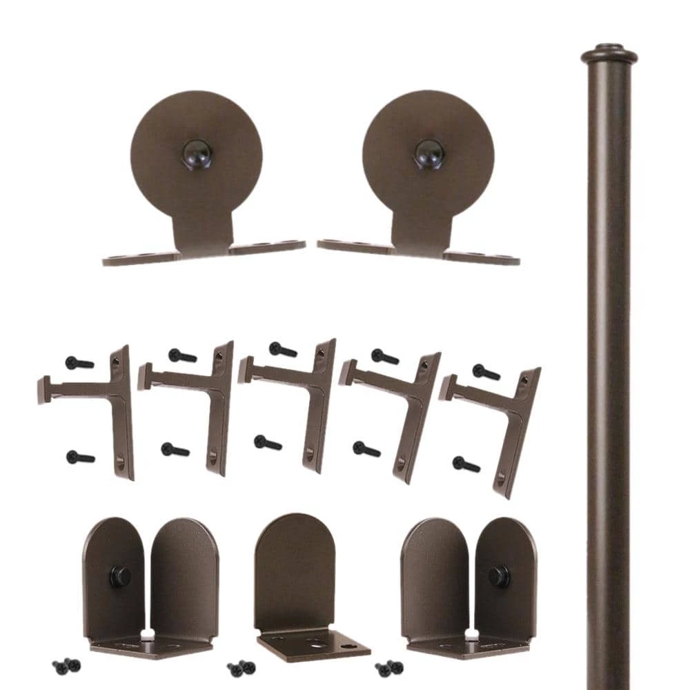 Now is your opportunity to make your home stand out from the crowd with Quiet Glide rolling door hardware. The Quiet Glide rolling door hardware will work with virtually any door style and be easily mounted to the wall in new construction or remodeling projects. The hardware kit has a durable powdered coat finish that contains 2 designer door rollers with thermoplastic wheels for a smooth and quiet rolling effect, One 96 in. solid aluminum rail, 6 vertical brackets to attach the rail to the wall, 1 pair of metal end caps to provide a finished look, 1 pair of metal center floor guides, 1 pair of designer metal floor door stops and all the hardware fasteners to assemble the barn door hardware to the door. (Door not included).