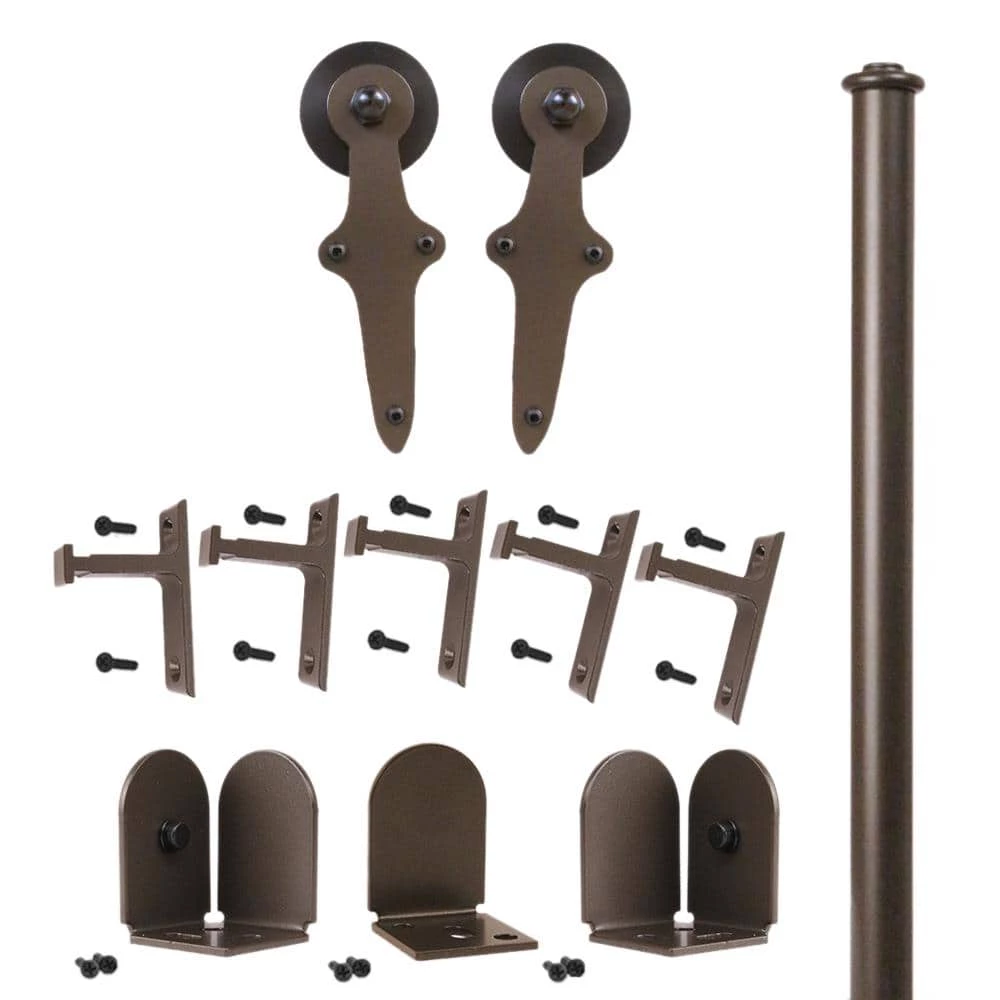 Now is your opportunity to make your home stand out from the crowd with Quiet Glide rolling door hardware. The Quiet Glide rolling door hardware will work with virtually any door style and be easily mounted to the wall in new construction or remodeling projects. The hardware kit has a durable powdered coat finish that contains 2 designer door rollers with thermoplastic wheels for a smooth and quiet rolling effect, One 96 in. solid aluminum rail, 6 vertical brackets to attach the rail to the wall, 1 pair of metal end caps to provide a finished look, 1 pair of metal center floor guides, 1 pair of designer metal floor door stops and all the hardware fasteners to assemble the barn door hardware to the door. (Door not included).