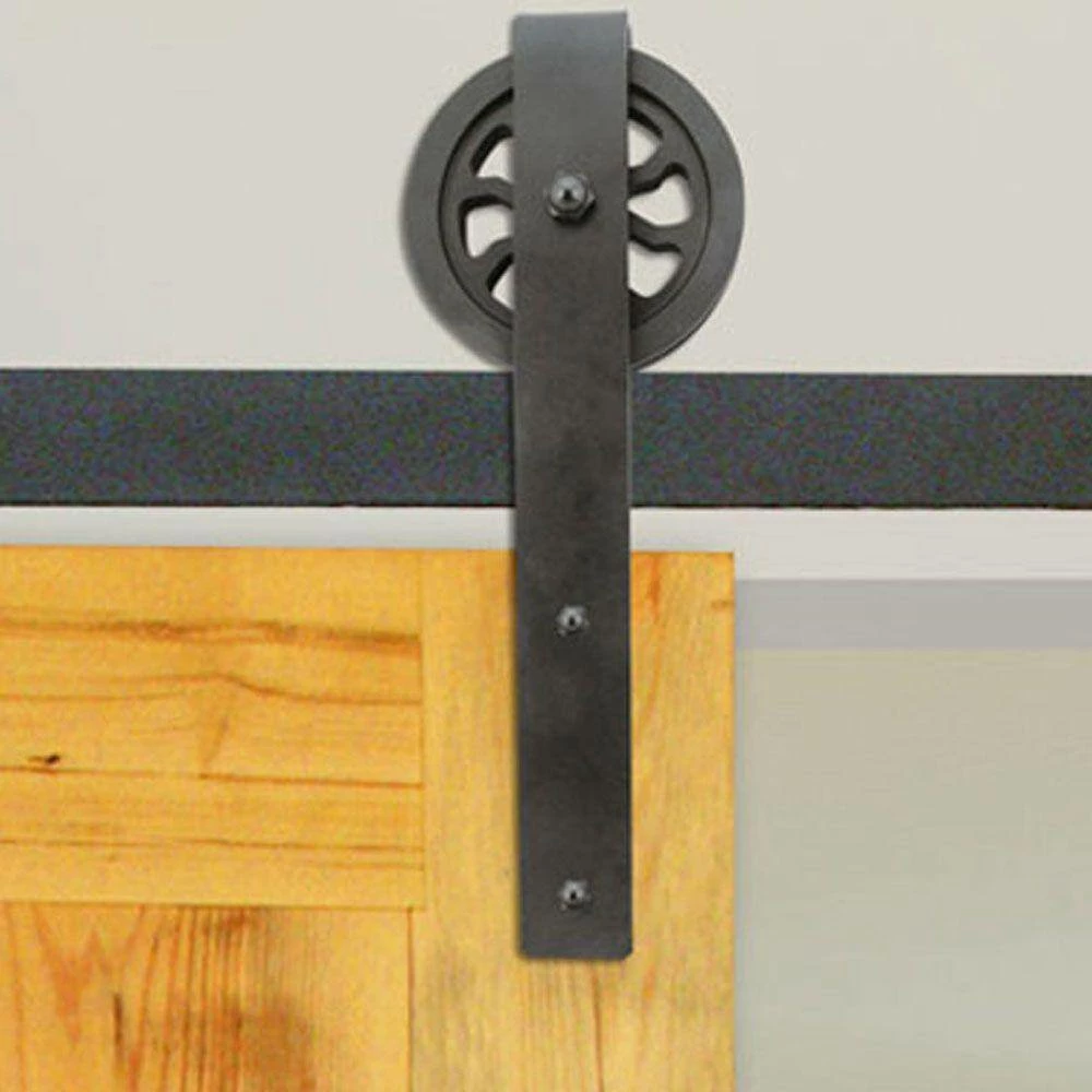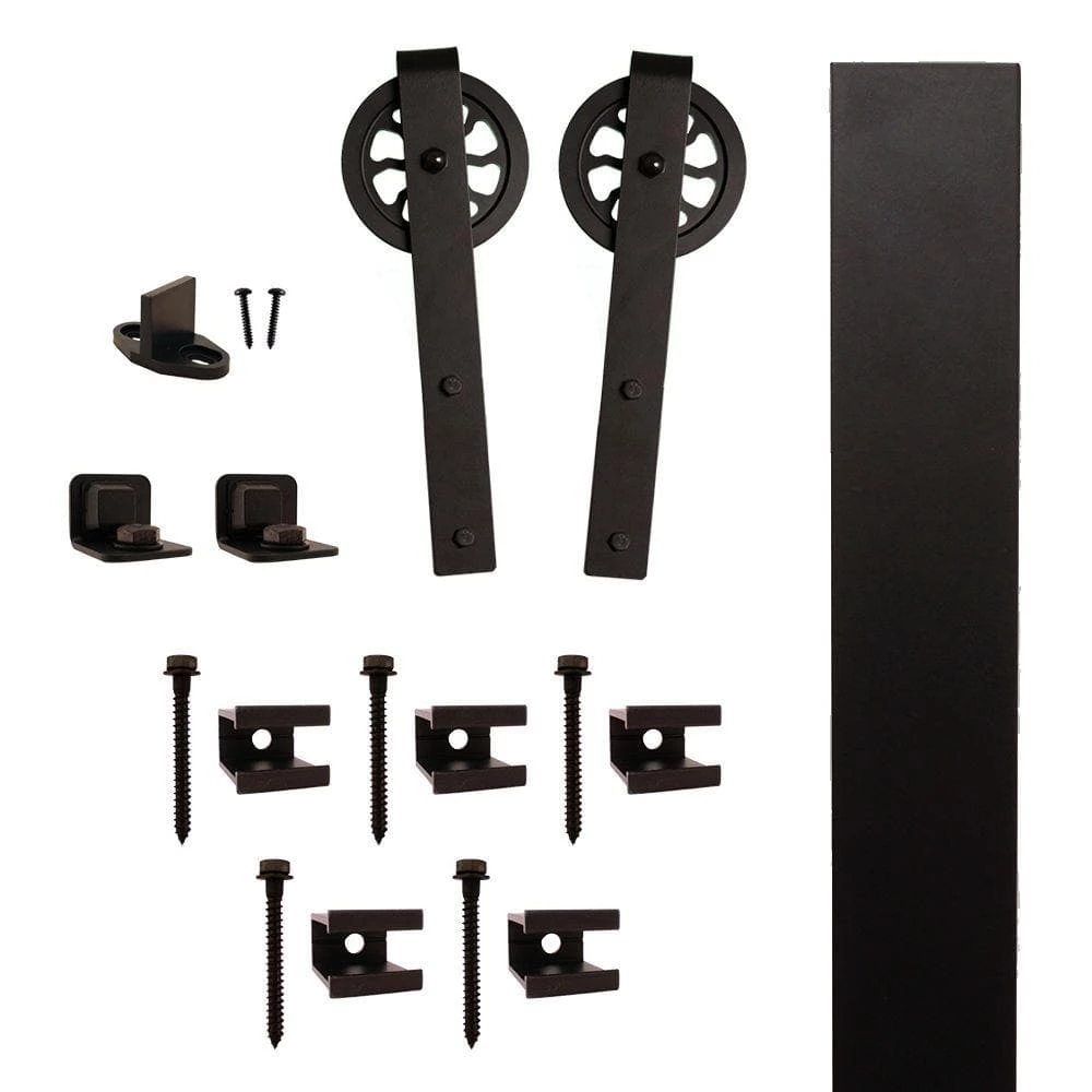 - Kit comes with all the parts needed to hang a standard 36 in. door, one 6 ft. rail, 5 wall mounting brackets, 2 roller straps, 1 center guide and rail stops (door not included)