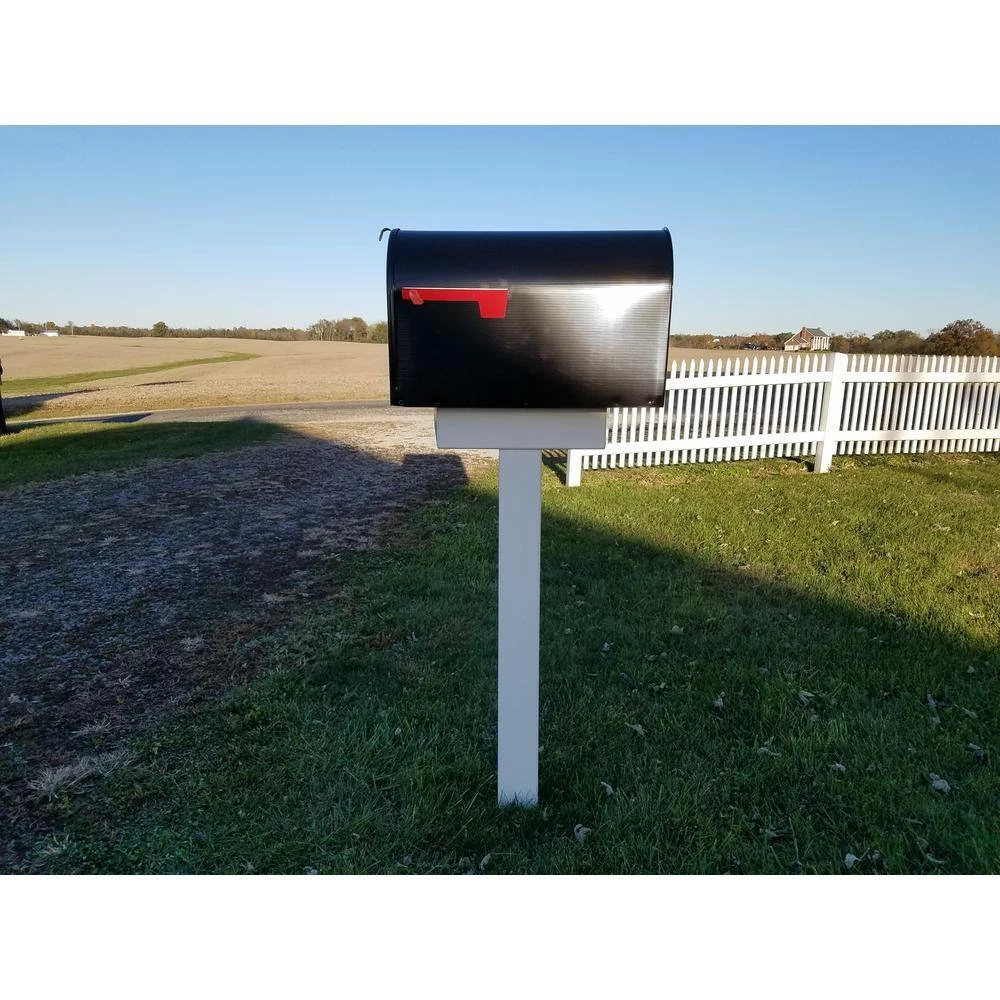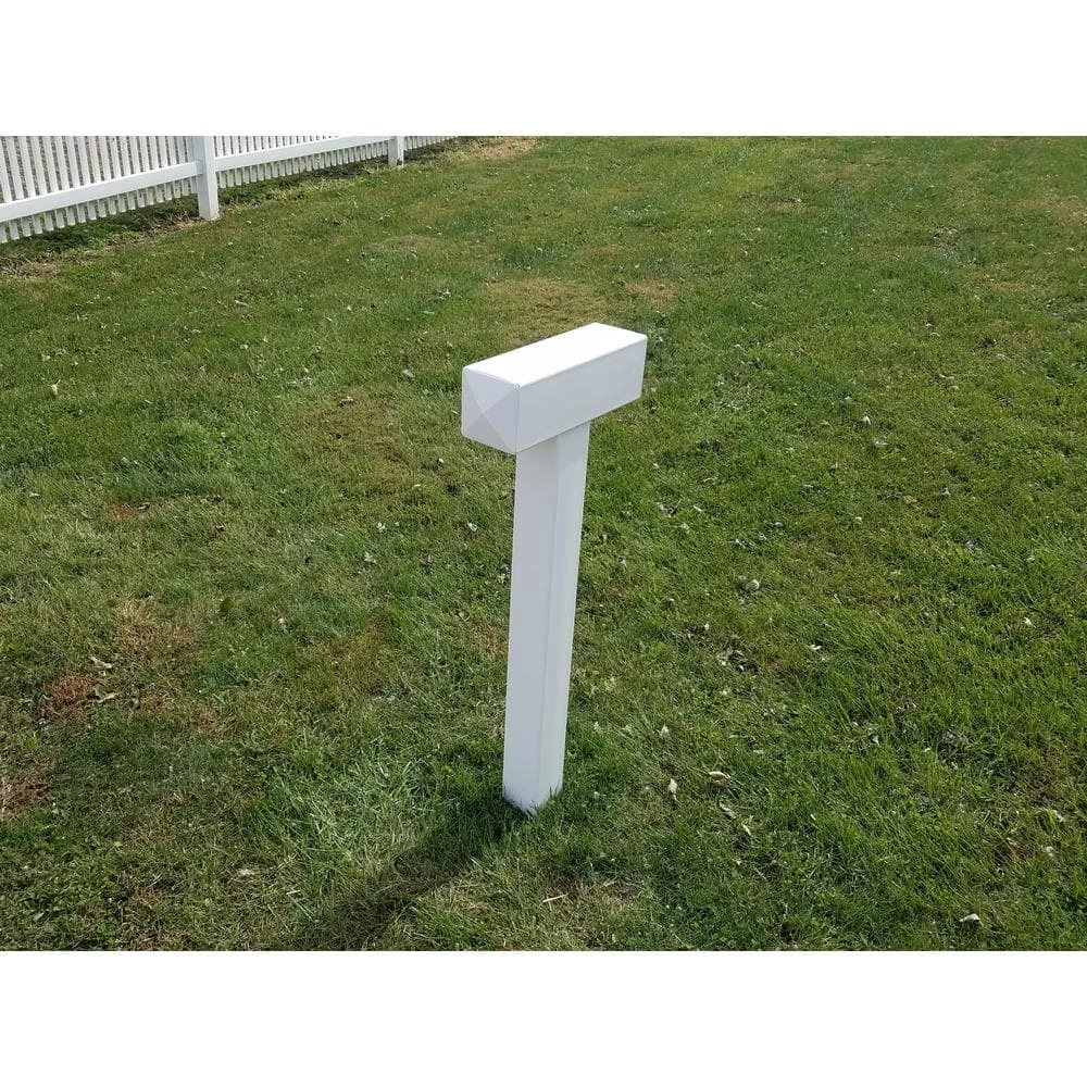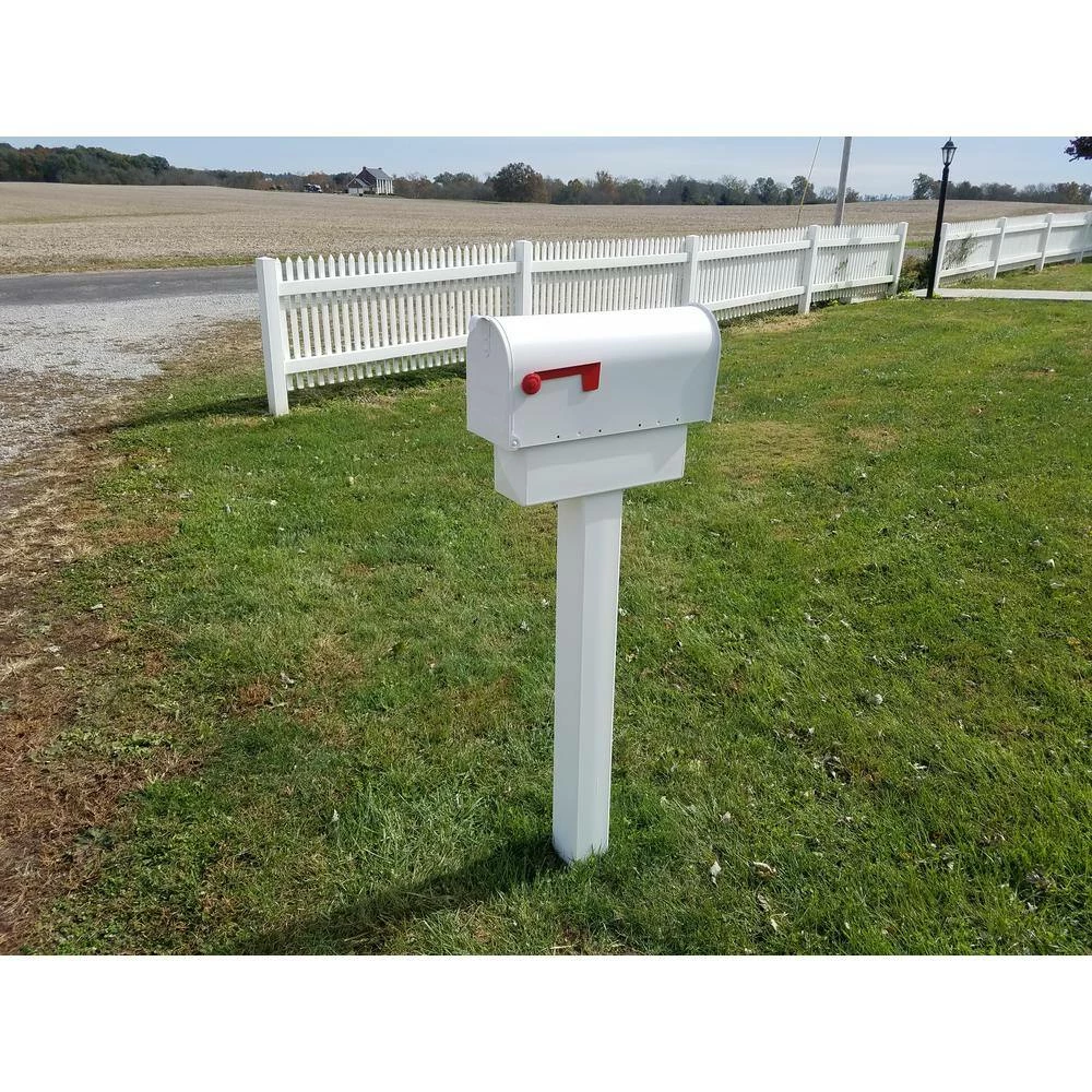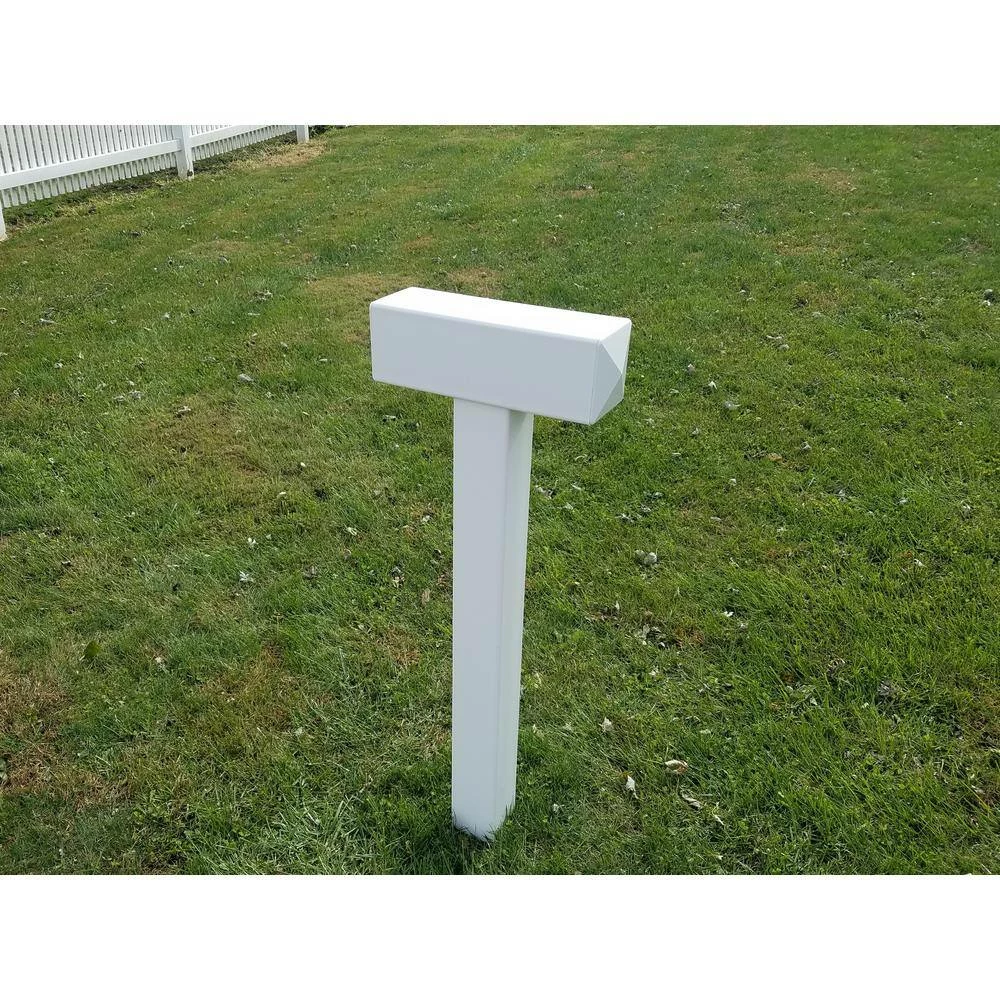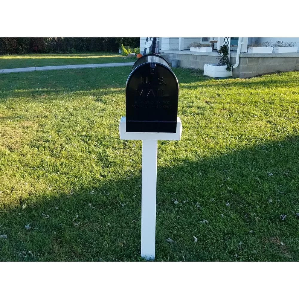 XL Mailbox Design The Handy Post Solo sleeve (mailbox not included) is constructed of maintenance-free and durable PVC (Vinyl) and comes with a Lifetime Warranty against peeling, flaking, blistering, corroding, rotting. abnormal discoloration and manufacturing defects. It is designed to fit over an existing or new wood 4 in. x 4 in. (actual 3.5 in. x 3.5 in.) post, or can fit over many no-dig supports of similar dimensions. If your mailbox is secured to any type of wood 4 in. x 4 in. configuration, you can modify it by cutting it to a straight up 41 in. H or less to accept The Handy Post Solo. The Handy Post Solo is designed to accommodate a single mailbox of any size. The cross arm is 15 in. across and 5 in. W and will accommodate up to 75 lbs. The cross arm can also be turned parallel or perpendicular to the mailbox, allowing for the look of your choice. With online shopping on a seemingly endless climb, larger mailboxes will be desired and The Handy Post Solo will accommodate all sizes. This aesthetically pleasing, economical product will enhance any home, business or neighborhood property. The Handy Post Solo will add character to any setting. Conveniently packaged with stainless steel hardware and installation instructions included.
